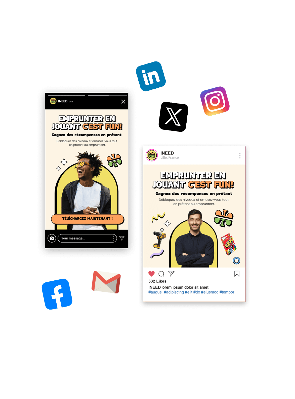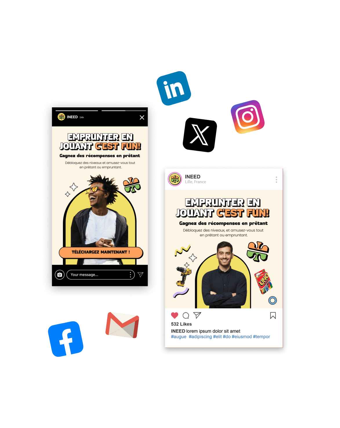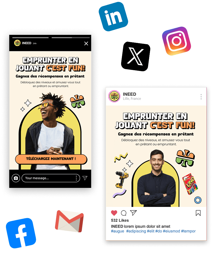Pour dynamiser votre communication web & réseaux sociaux : visuels pour posts, stories, Ads, carrousels, déclinaisons.